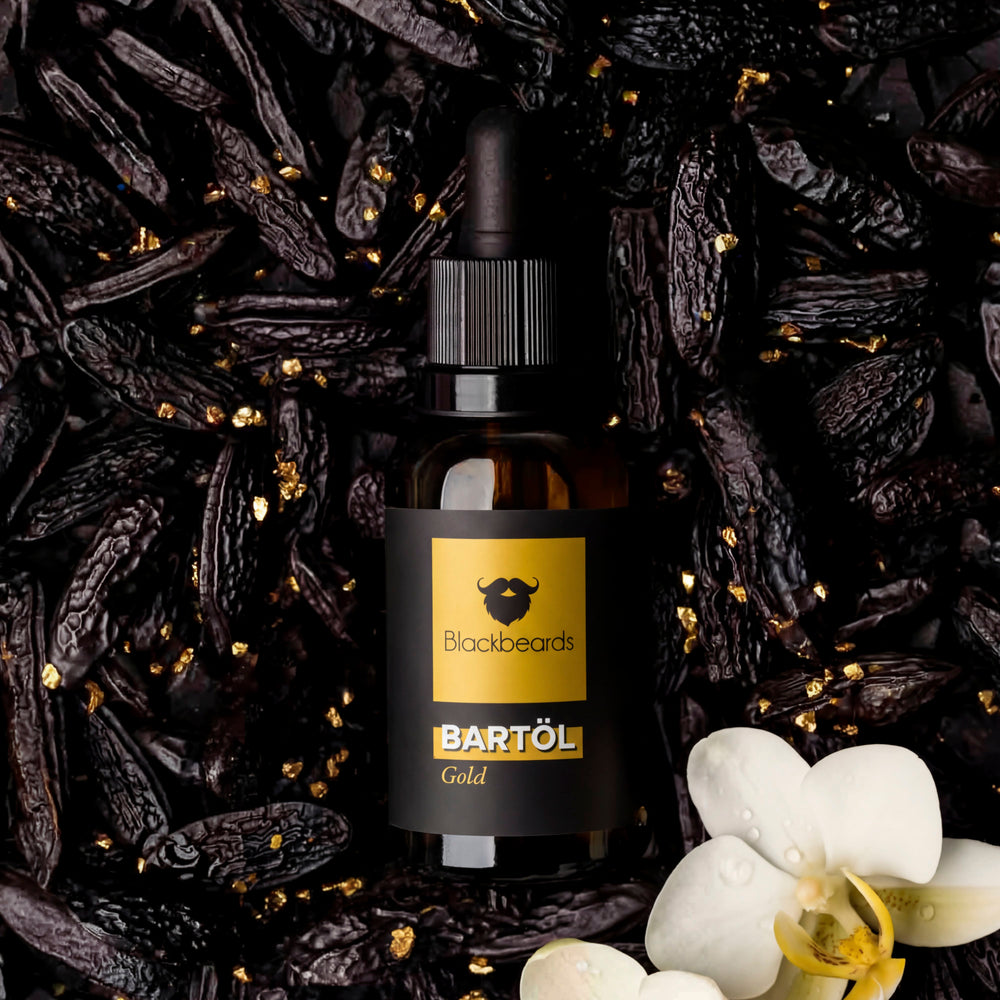 Tonkabohne und Vanille, darüber Bergamotte – Gold riecht nach den Abenden, die du nicht vergisst. Patchouli und Vetiver geben dem Duft Tiefe, die sich mit den Stunden entfaltet. Jojobaöl und Arganöl pflegen deinen Bart, ohne zu beschweren. Unser wärmster Duft – das Bartöl Gold von Blackbeards.